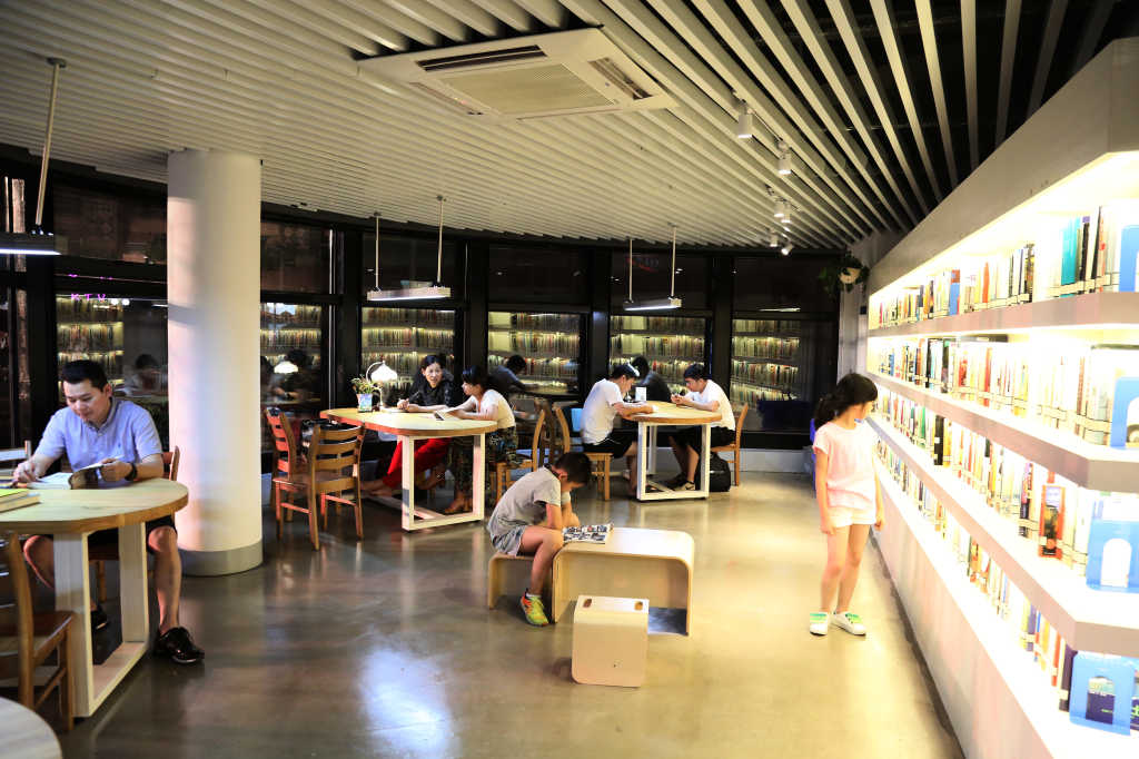 24小时 | 位于下沉式海坛广场的城市书房,可谓是“地貌奇特”,半圆落地玻璃墙面向广场水池,风景独好。书房面积近180平方米,由海坛广场一废弃仓库改造而成,设计师把广场水池的水泵打造成书房内景观,独具一格。走进书房,你既可以选择傍窗而坐,享受一水之隔的热闹,也可以择内室静读,走进阅读的海洋。如今,它与道德广场、红日亭、华盖词场等融为一体,共同构建了一个以志愿服务为特色的文化地标。nttttttt