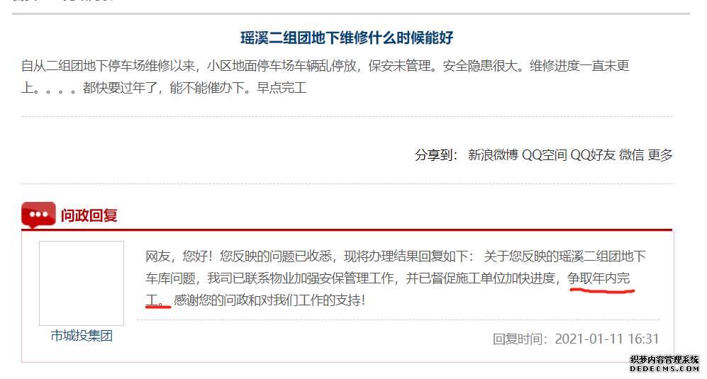 市城投集团答复: