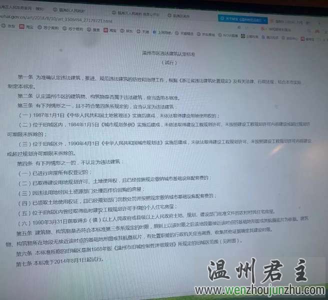 我们的拆迁政策向瓯海区政府问:温州市违法建筑认定标准(试行)文件,作价回购的不认定