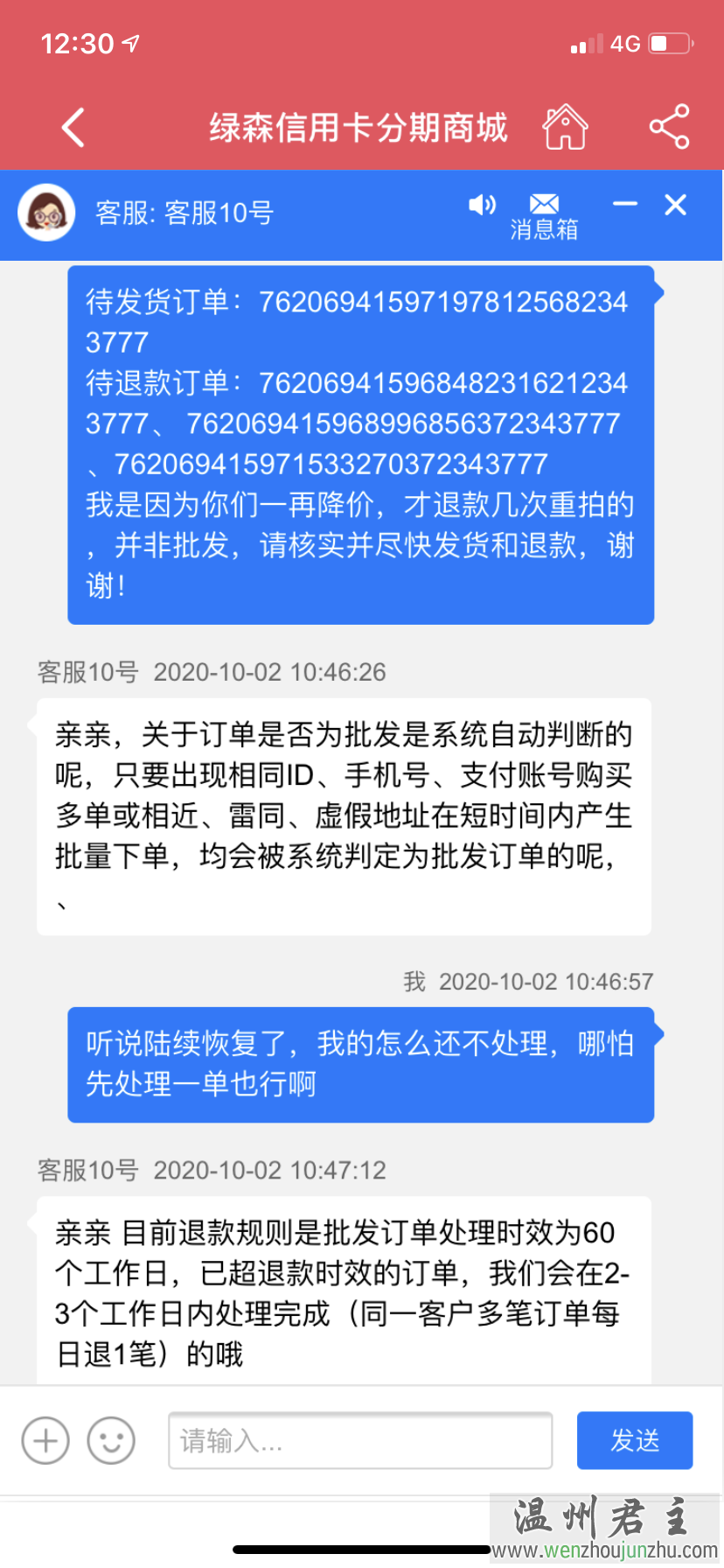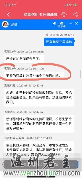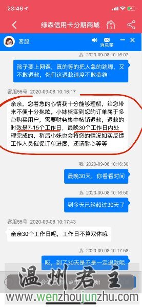 您好,您于2020年10月9日向温州市鹿城区市场监督管理局信访事项(政务网WX20200572174812)已收悉,经我单位调查核实,现答复如下: 一、我局高度重视绿森集团投诉件大幅增加的问题,已成立消费投诉举报应急小组,启动应急预案。 二、2020年9月4日,联合区司法局对浙江绿森信息科技集团有限公司进行行政约谈,要求企业及时解决投诉问题,切实维护消费者合法权益。 三、我局立足本局职能,严格按照《市场监督管理投诉举报处理暂行办法》予以调解、调查并跟踪处理。我单位工作人员已将您的问题与被诉方沟通协调,被诉方表示受企业经营内外部因素影响,退款订单急剧增加,仓库日常发货工作和公司财务日常退款工作均受到影响,每日处理订单能力有限,已在超负荷运转中,目前已在提升处理速度尽快完成发货和退款。如您对企业安排的退款(发货)时间有异议,建议您也可向人民法院提起诉讼。 承办单位:温州市鹿城区市场监督管理局 联系号码:0577-88060327 感谢您对我局工作的监督与支持,欢迎对我们的工作多提宝贵意见!